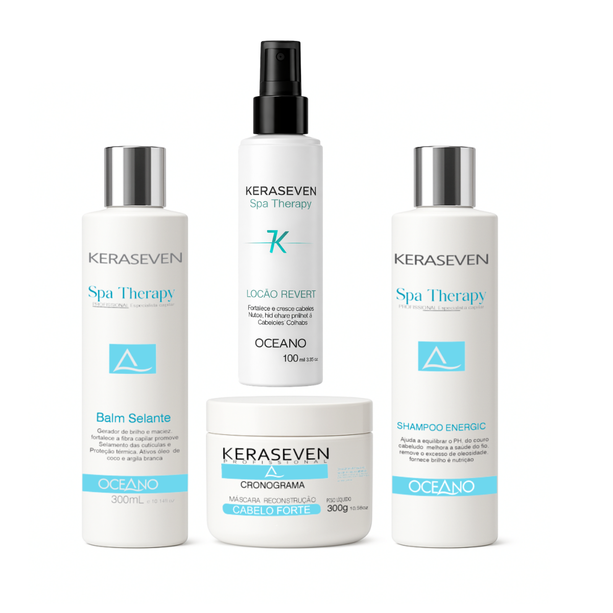 Com o Baicapil™ na Loção Revert — ativo com estudo clínico que demonstra até 60% menos queda em 90 dias* — e a Queratina da Máscara Cabelo Forte, o Spa Therapy age de forma completa: trata o couro cabeludo, reconstrói o fio e sela as cutículas. Um sistema de 4 etapas que você aplica em casa com resultado profissional.